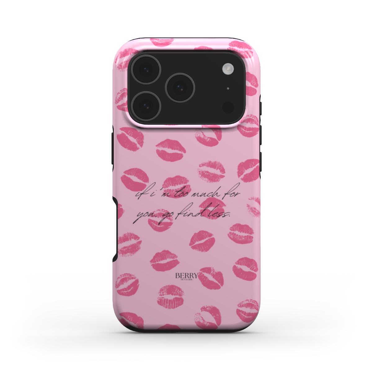 If I'm too much, find less cover and case is pure main character energy. Pink base, hot pink kisses and a sentence that says it all, without you having to explain yourself. It's romantic, confident and a little sassy in that classy way, just like when you walk out the door and know the look fits. The Valentines Collection is about daring to be full, and this cover does that for you every time you pick up your phone.