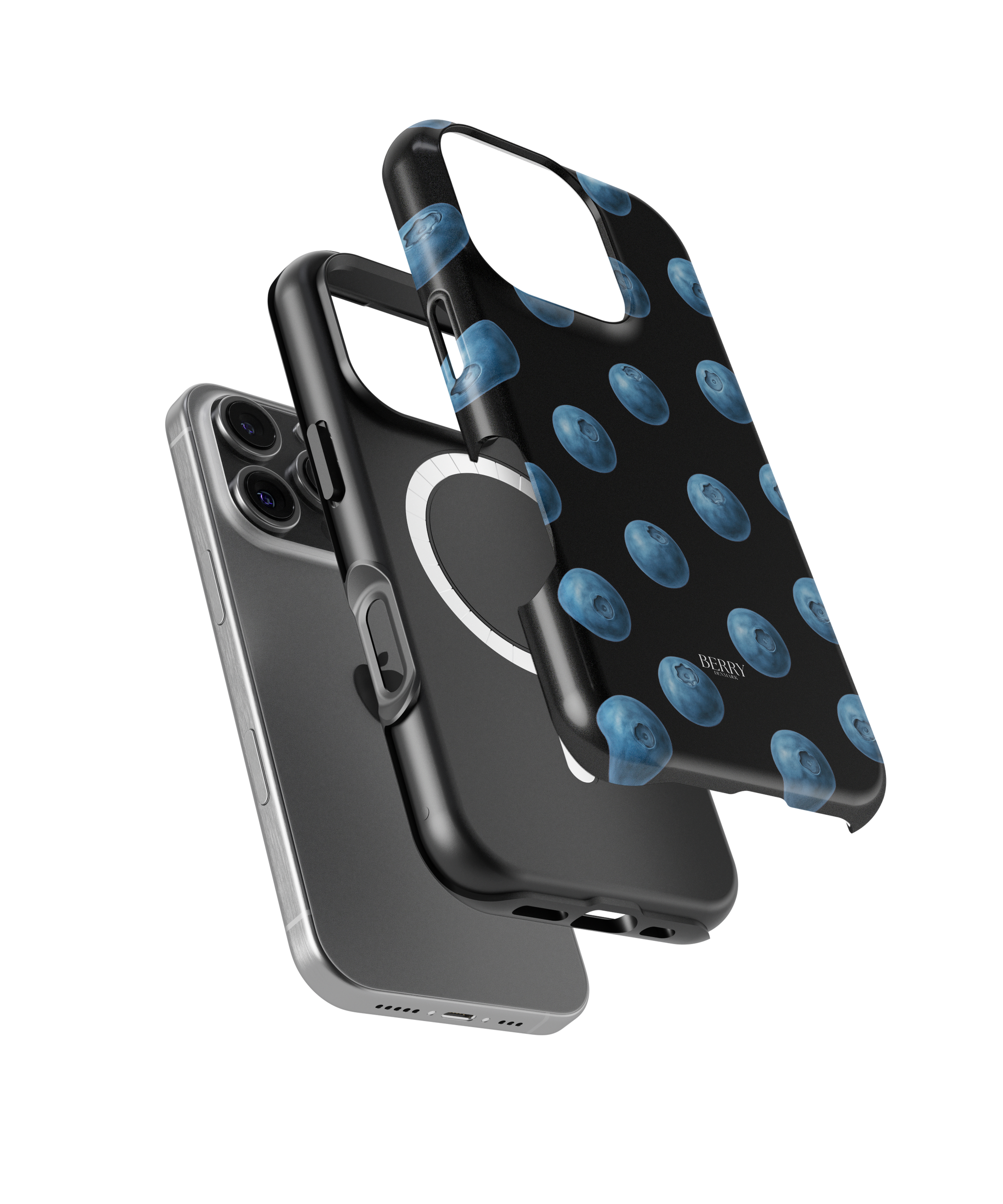 Blueberry Kisses Midnight er casen med den ultimative late night café-vibe. De blå bær på dyb sort baggrund giver et look, der matcher alt fra aftenture i byen til after dark matcha og midnatssnacks med veninderne. Perfekt til dig, der elsker kontraster og går efter accessories, som skaber blikfang uden at prøve for hårdt. Casen løfter din iPhone med en cool, moderne edge og passer perfekt til både sleek outfits og dine yndlingshoodies.