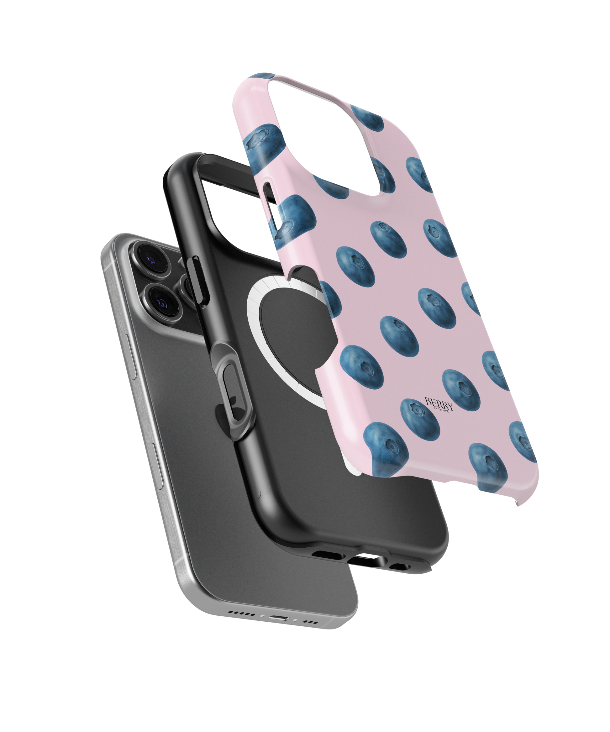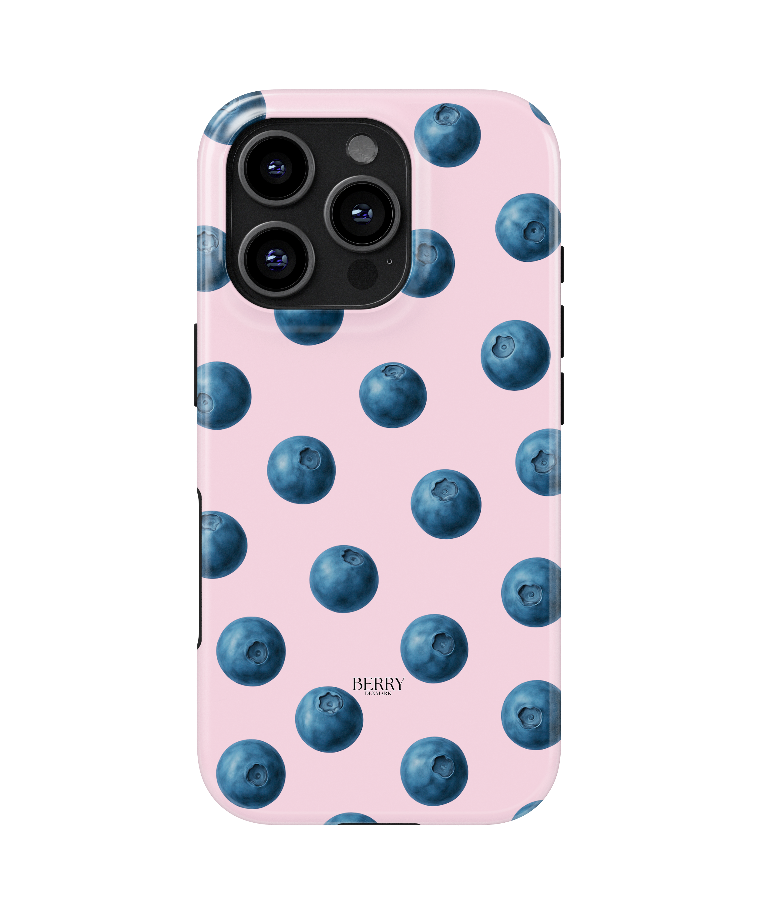Blueberry Kisses Rose kombinerer blå bær med en soft lyserød baggrund, der gør din iPhone ekstra cute og ready til alt fra café dates til pink matcha og bubble tea. Casen er til dig, der elsker girly detaljer, pastel vibes og de dage, hvor alt matcher din pink hoodie og din yndlingslipgloss.