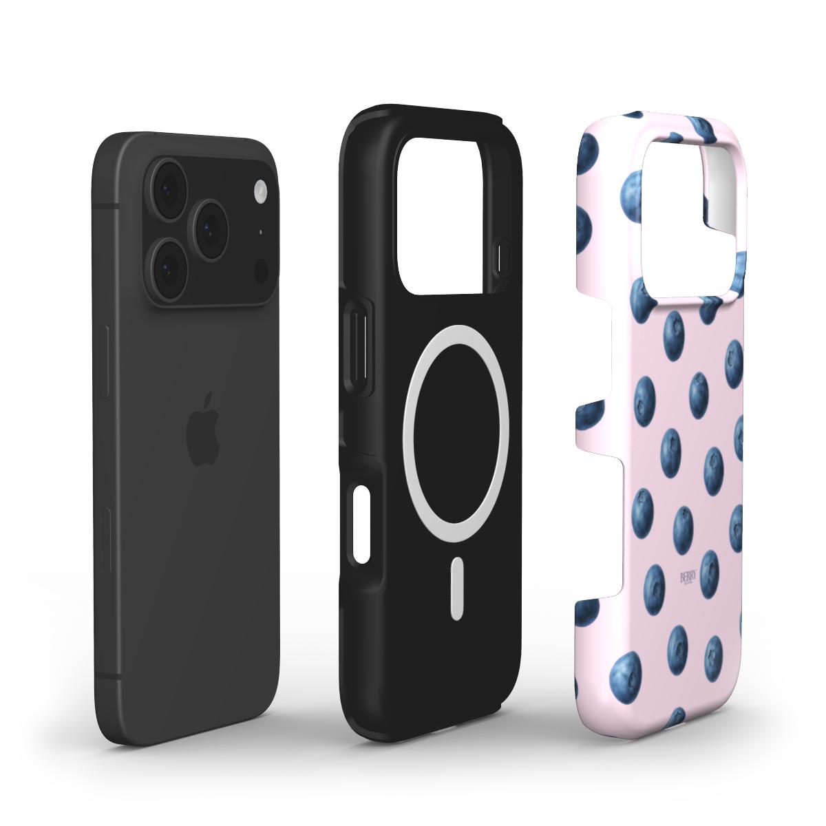 Blueberry Kisses Rose kombinerer blå bær med en soft lyserød baggrund, der gør din iPhone ekstra cute og ready til alt fra café dates til pink matcha og bubble tea. Casen er til dig, der elsker girly detaljer, pastel vibes og de dage, hvor alt matcher din pink hoodie og din yndlingslipgloss.