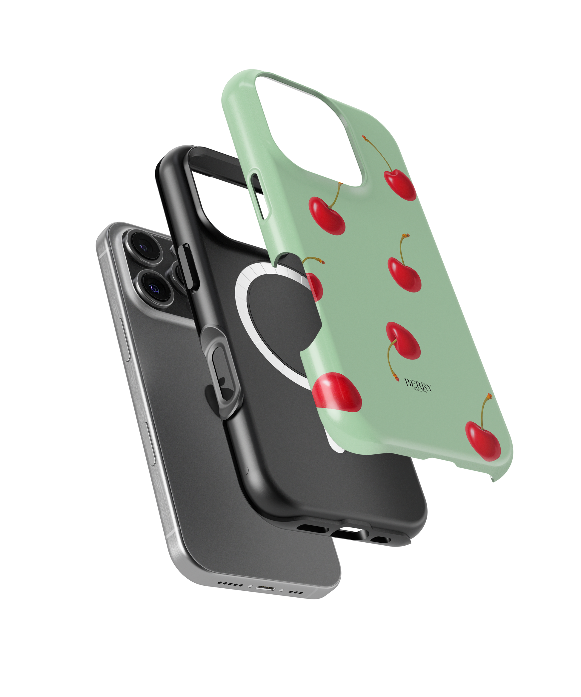 Cherry Kisses Matcha er til dig der aldrig springer over iced matcha mandag og elsker at mixe din phone case med de mest insta-venlige accessories. Den mintede grønne vibe føles som en tur til Tokyo street café hvor du altid har de fineste negle og er den der girl som andre spørger hvor alt er fra. Gør dit outfit lidt mere juicy med cherries og matcha i perfekt balance.