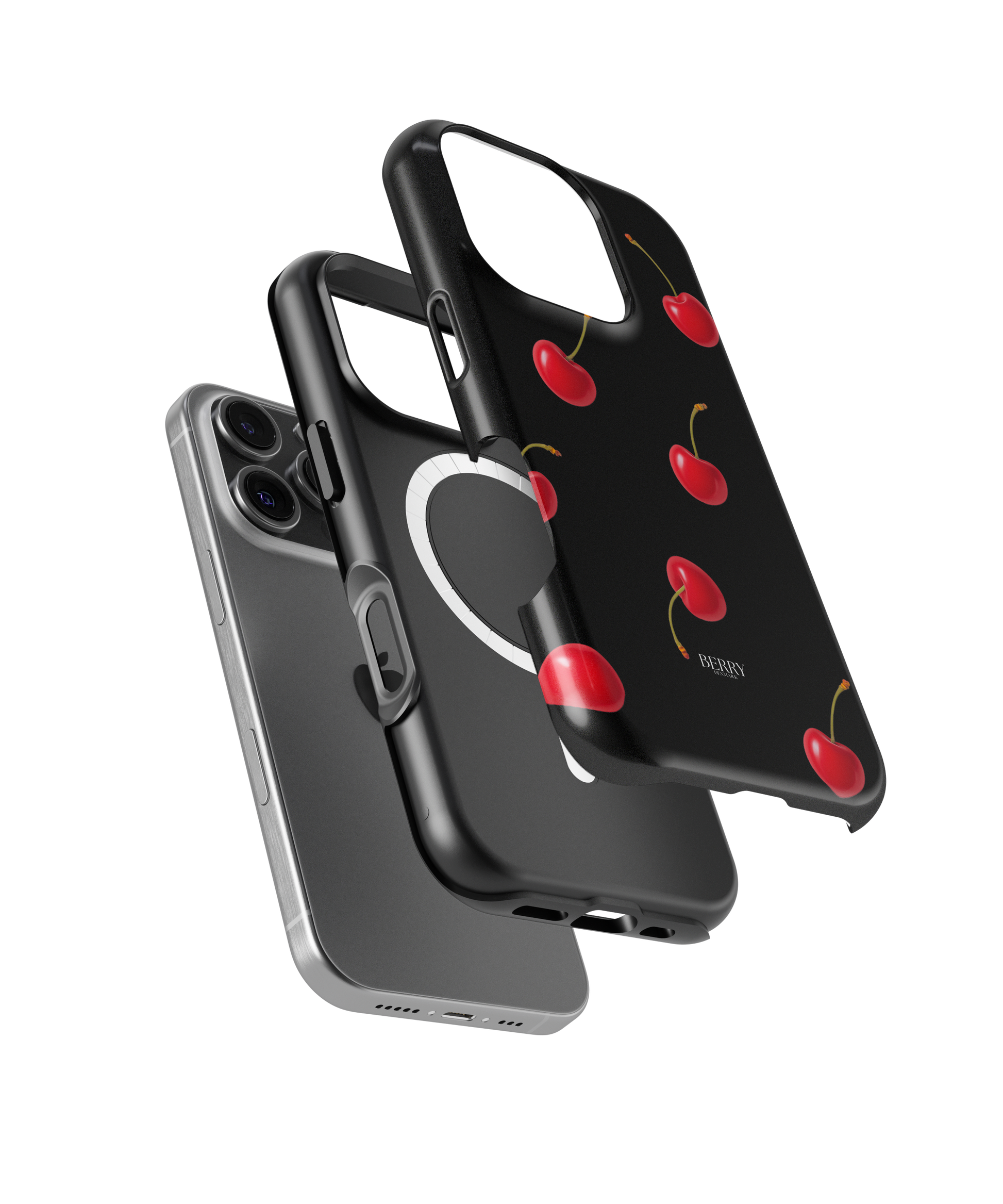 Cherry Kisses Midnight er til dig der altid vælger en iced americano efter klokken 20 og kan finde på at tage ud bare for at få en good mirror selfie. Den mørke vibe føles som en aften med citylights og cherry lips hvor du matcher din case med et rødt gloss og dine fave loafers. Elsker at være lidt ekstra og altid have en juicy detalje i hånden.