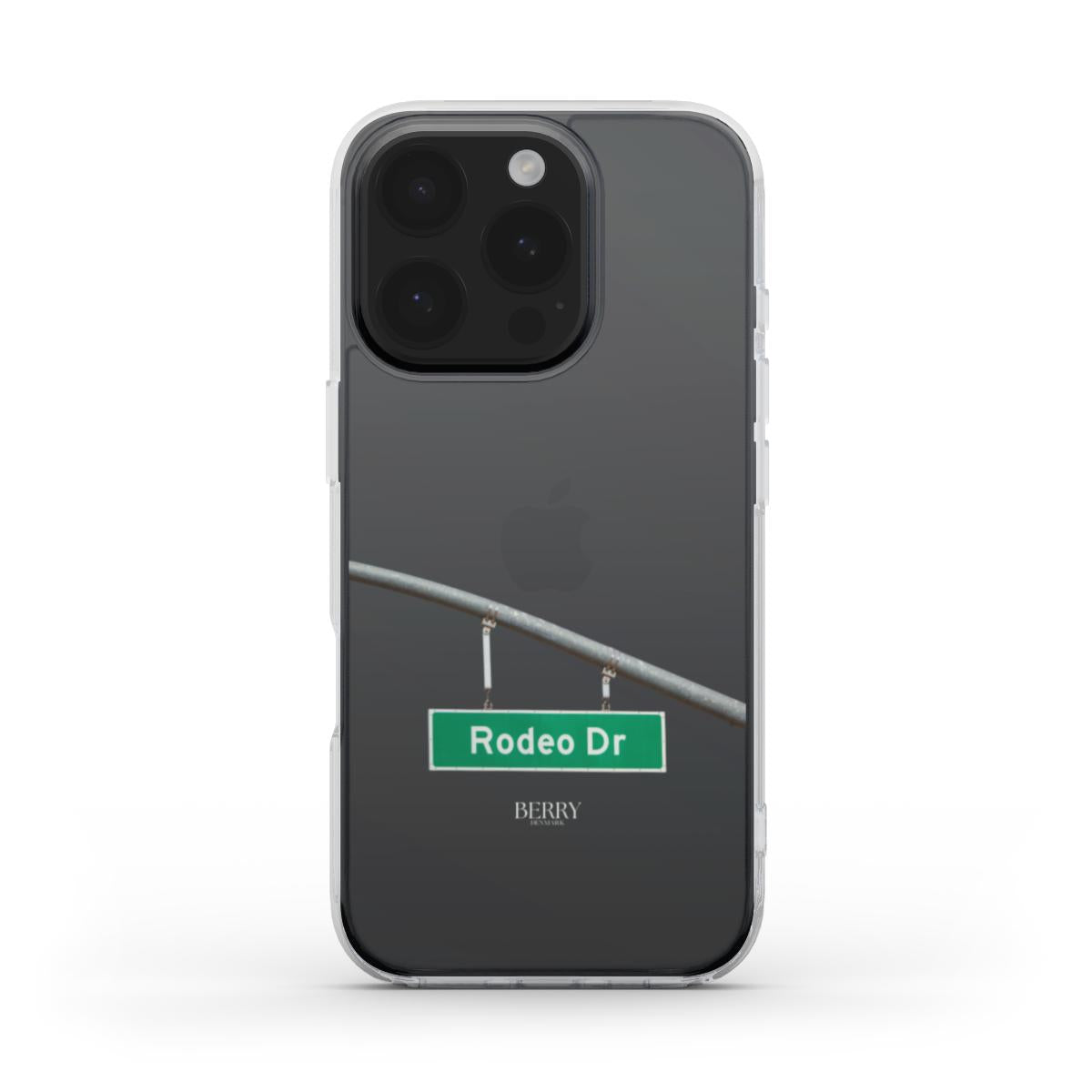 Clear Rodeo Drive er et gennemsigtigt iPhone cover fra Berry Denmark med det ikoniske Rodeo Dr skilt som detalje. Det giver din iPhone en Beverly Hills shopping vibe og lader telefonens egen farve være en del af looket. Til dig der savner 2016, Cali dreamin og den der lette, lidt luksuriøse stemning, hvor alt føles som en plan.