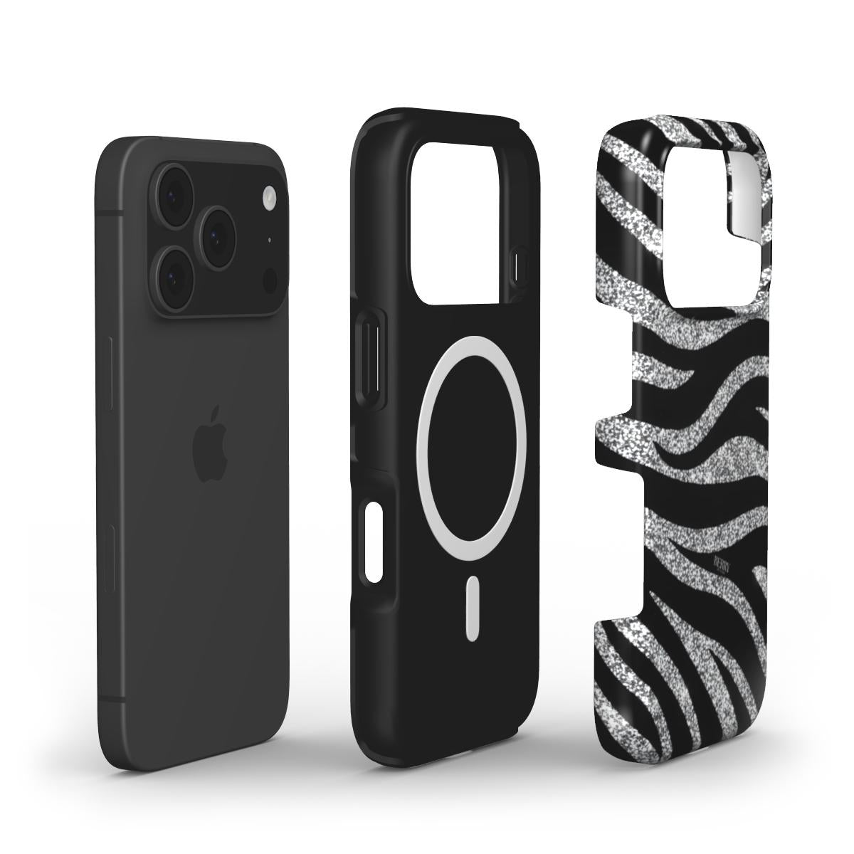 Crystal Zebra er iphone coveret til dig der elsker når black and silver tager hele scenen. De sølvglitrende zebra striber giver din iphone et vildt men stadig super chic udtryk, som fungerer lige godt til hverdags jeans, byture og mirror selfies. Et aesthetic glam iphone case til hende der aldrig vælger det kedelige valg, og som gerne vil have et cover der matcher hendes energi, hver gang hun lægger telefonen på bordet.