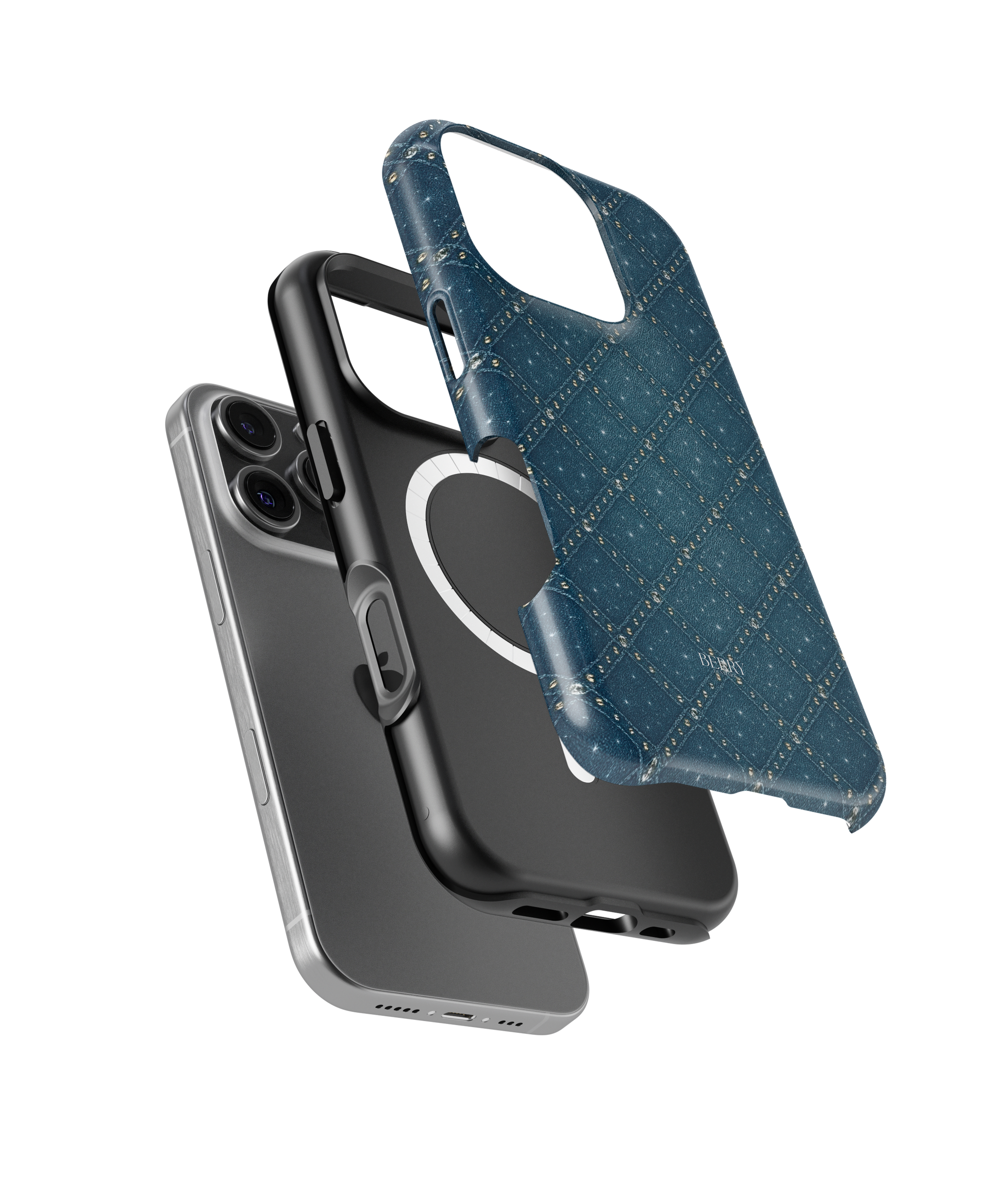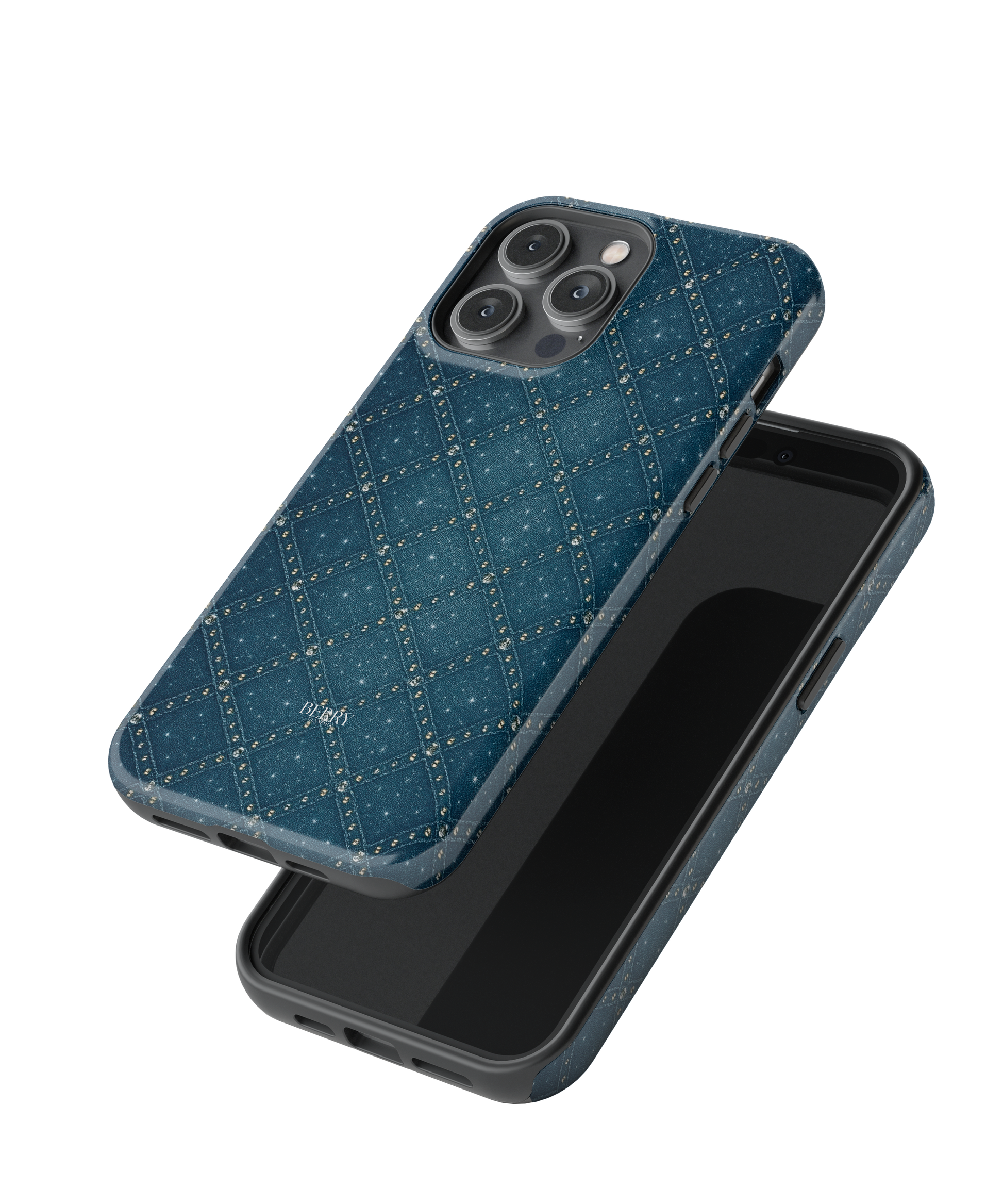 Denim Glam iPhone Case er som din favorit vintage denimjakke, bare med et glam twist. Det quiltede mønster er dækket af små glimtende detaljer, der fanger lyset hver gang du tager din telefon frem. Et cover der føles både edgy, chic og effortless på samme tid – præcis som den slags look der aldrig går af mode.