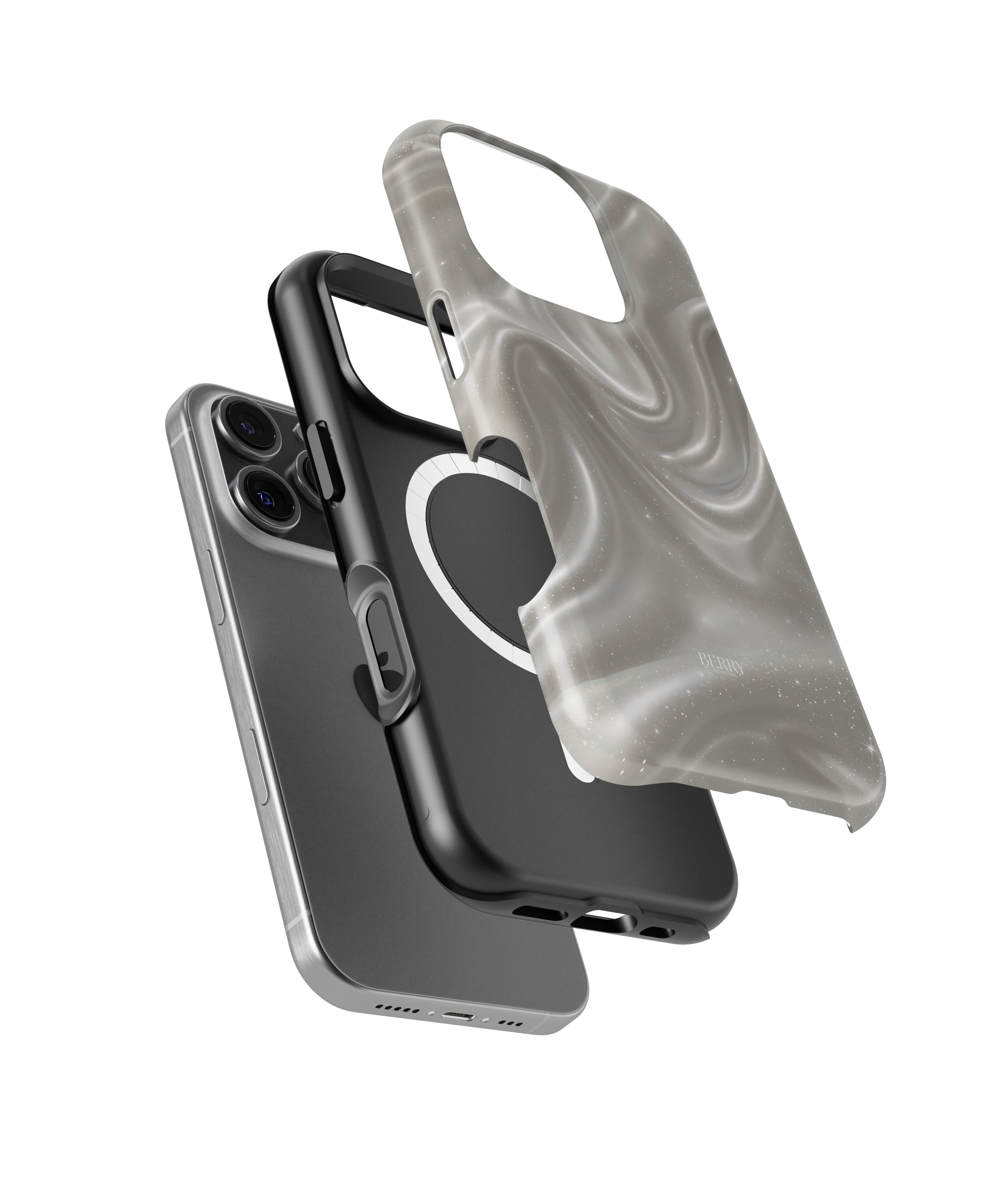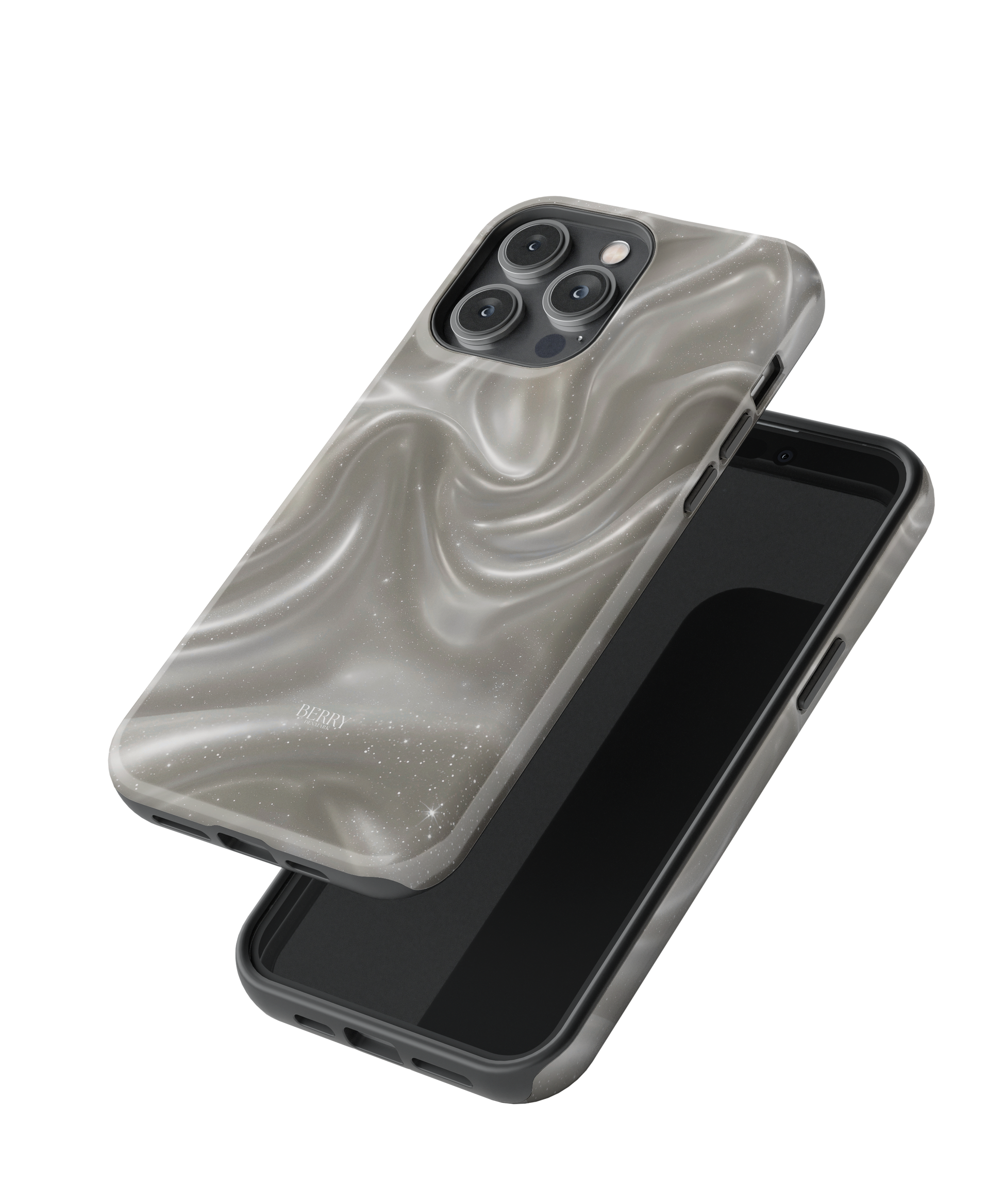 Dreamy Cream iPhone Case er en luksuriøs kombination af elegance og drømmeunivers. Det bølgende swirl mønster i cremede beige og perlemorsagtige nuancer giver casen et næsten flydende udtryk, som reflekterer lyset på en subtil og sofistikeret måde. De små glimt af stjernestøv i designet skaber følelsen af at bære et lille kosmos i hånden, perfekt til dig der elsker at kombinere det minimalistiske med et strejf af magi. Casen er både chic og tidløs, og den tilføjer en rolig men eksklusiv vibe til din hverdag.