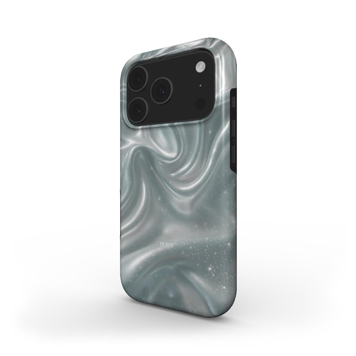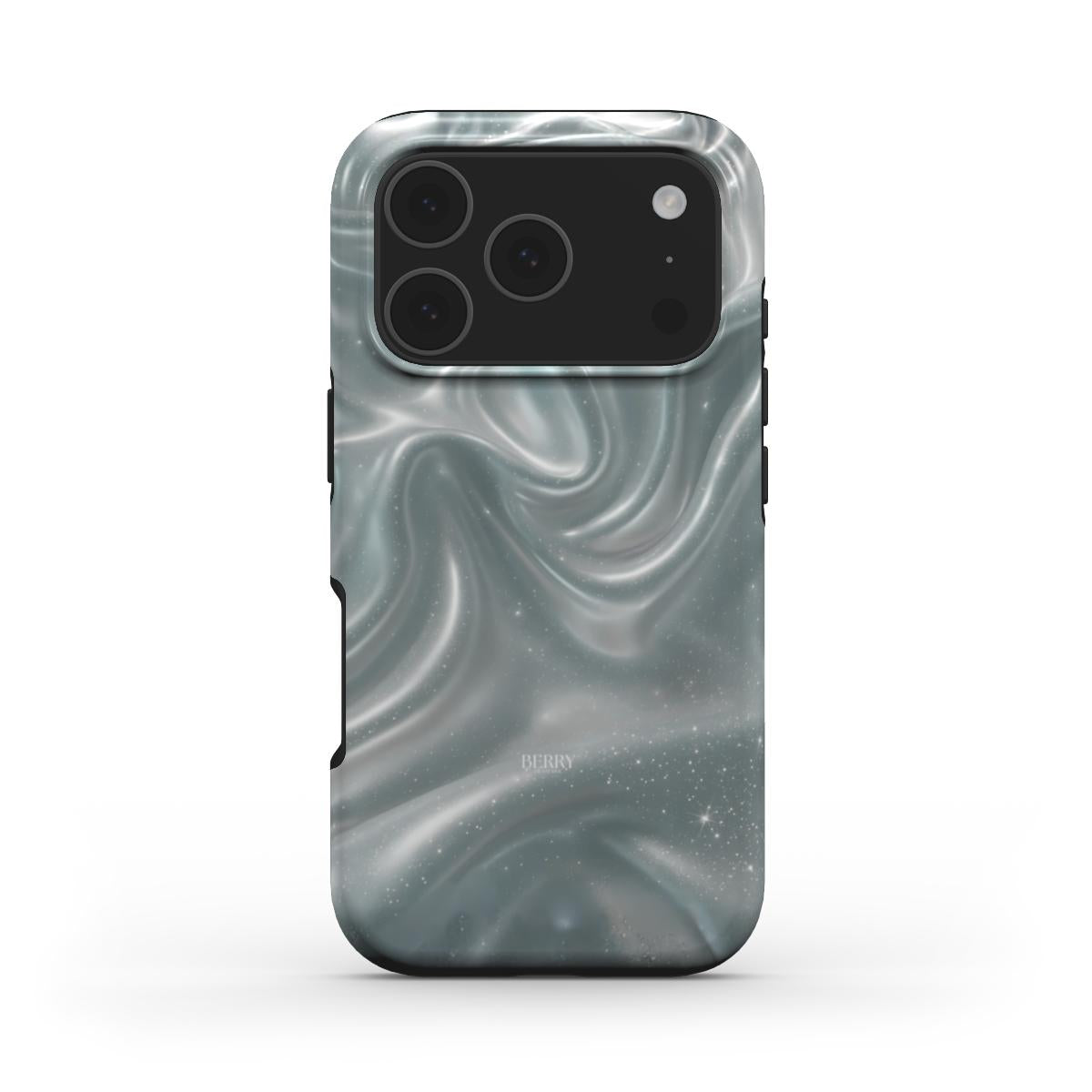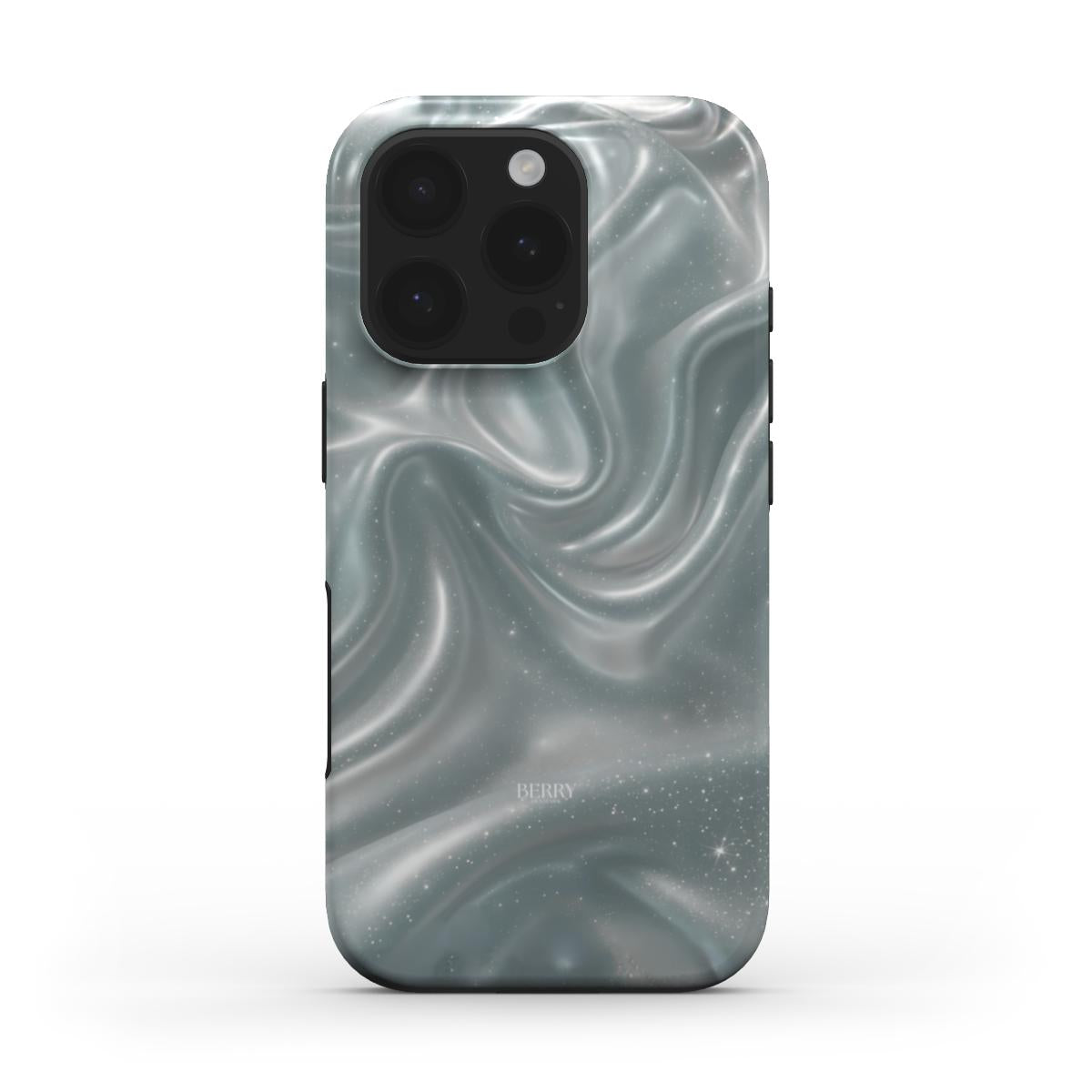 Dreamy Sky iPhone Case har et drømmende swirl design i kølige blå og sølvtoner som glimter når lyset rammer. Det føles som en blanding af mælkevejen og flydende silke i slowmotion og giver et magisk elegant og out of this world look.
