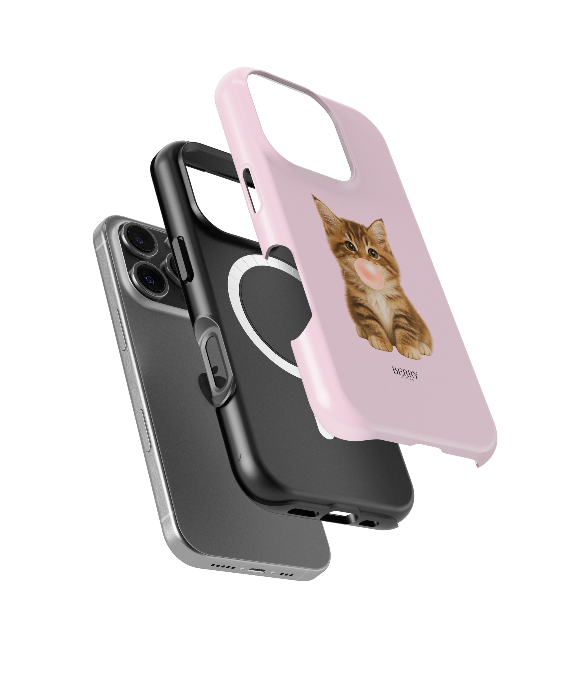 Kitty Rose er casen til dig der elsker når cute bliver gjort til et fashion statement. Den lyserøde base giver Barbie vibes, og katten med bubblegum er ren main character energy, som den veninde der altid laver de sjoveste TikToks og ved præcis hvilken lipgloss alle skal have. Et cover der passer perfekt til cropped cardigans, low rise jeans og dine yndlings chunky sneakers, men også til cozy nights i hoodie når du stadig vil have din telefon dressed up.