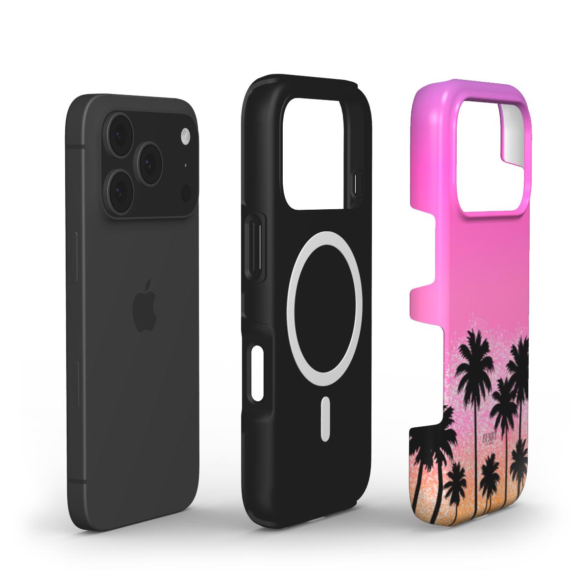 L.A. Sunset er den slags 2016 æstetik, der får alt til at se lidt mere lækkert ud, uden at du skal gøre noget ekstra. Coveret blander pink og varm solnedgang i en blød gradient, og de sorte palmer nederst giver præcis den LA signatur, der føles som sommer, frihed og planer der opstår på vej ud ad døren. Den lette glitrende effekt i bunden løfter udtrykket, så det rammer girly, glam og clean på samme tid. Casen er til dig, der tænker i helhed, outfit, hår, vibe, og som vil have et look der føles selvsikkert og gennemført, uanset om dagen starter tidligt eller slutter sent.