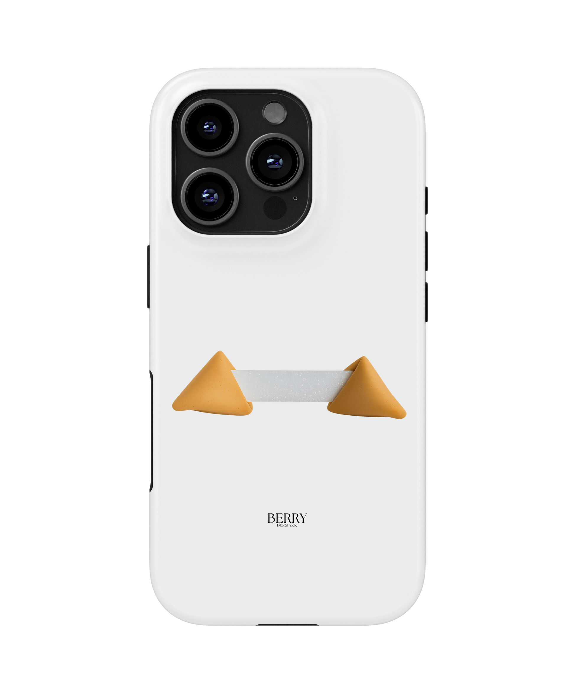 Lucky Clean er den minimalistiske fortune cookie vibe hvor less is more stadig føles magisk. De gyldne cookies og den glitrende seddel står helt crisp mod clean hvid som en stille reminder om at dine egne fortunes altid kan skrives om. Casen er rolig men stadig playful perfekt hvis du vil have et look der føles rent men stadig har lidt sparkle til din hverdag.