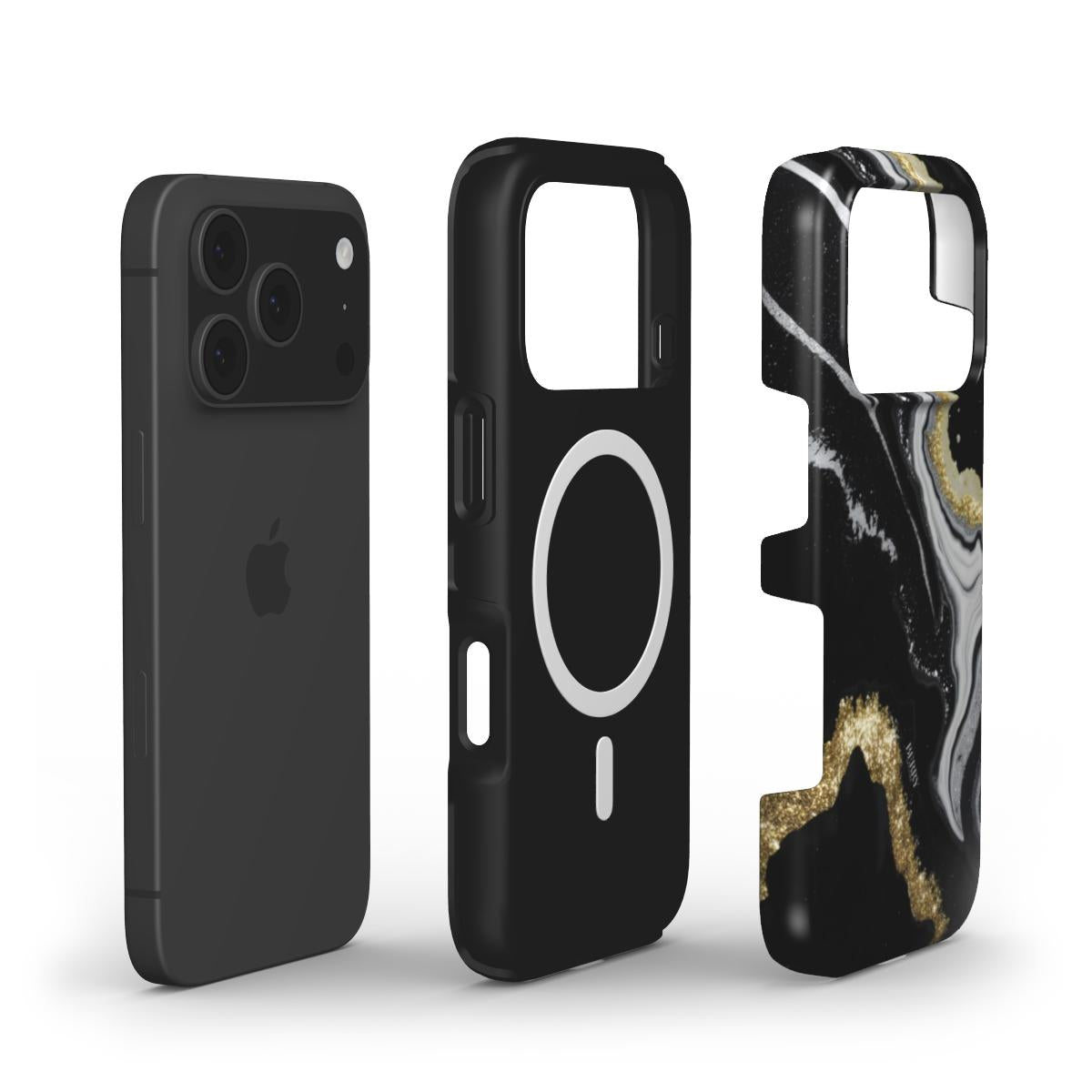 Midnight Gold Marble er iphone coveret til dig der elsker black med guld glam. Det sorte marble mønster med hvide strøg og gyldne kanter giver din telefon et dramatisk men stadig elegant look, der føles som et lille stykke luxury hver gang du tager den op. Perfekt til både hverdags outfit og nights out, når du vil have et aesthetic iphone case der ser dyrt ud og skiller sig tydeligt ud fra de klassiske covers.