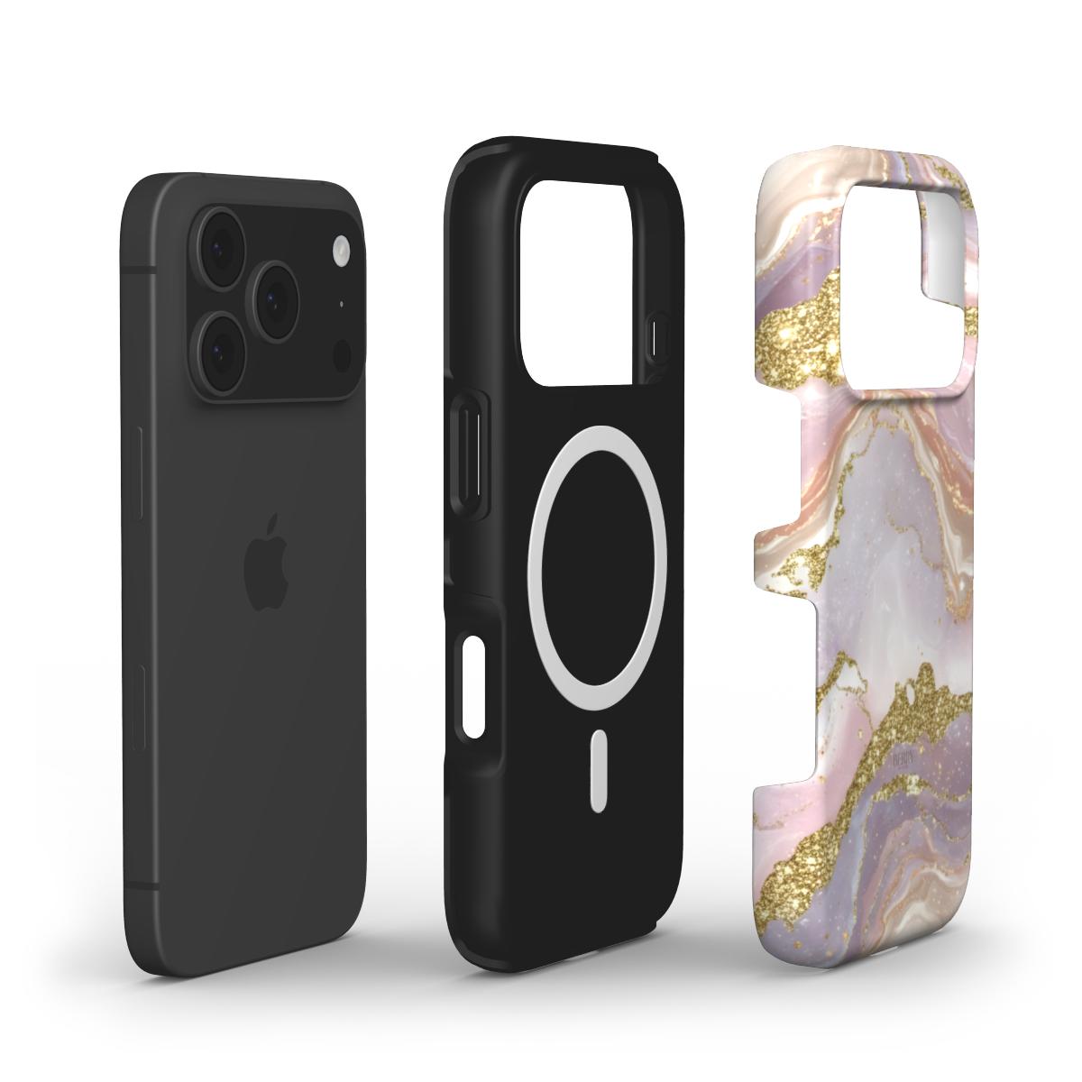 Midnight Sun er iphone coveret til dig der elsker soft rosa nuancer, lilla drømme og et strejf af guld glam. Marble mønsteret flyder som solnedgang på himlen, og giver din iphone et elegant og luksusagtigt look, der passer både til hverdag, cafétur og nights out. Et aesthetic girly iphone case til hende der altid vælger det smukkeste i rummet og gerne vil have et cover der føles som jewelry til telefonen.