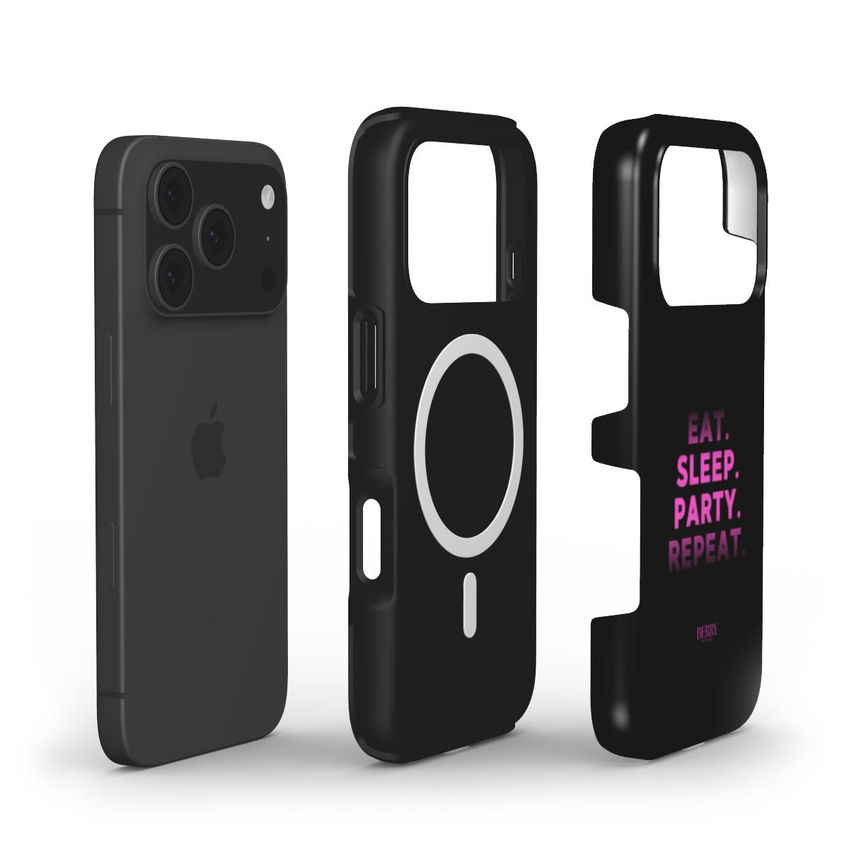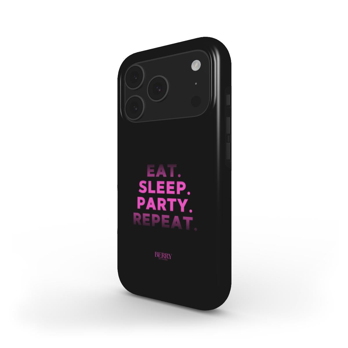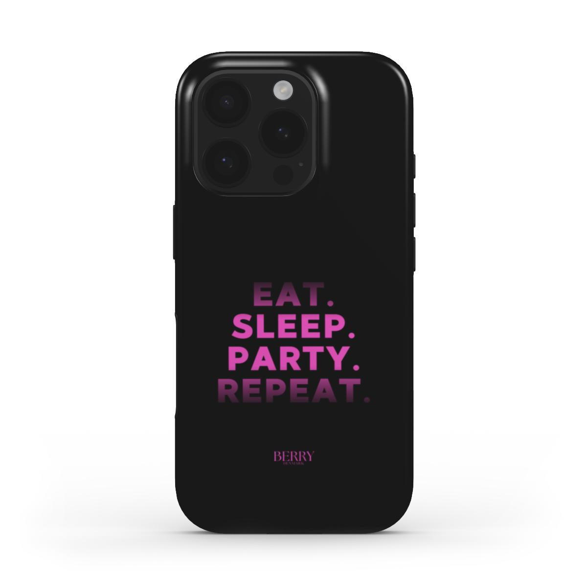 Repeat er et 2016 cover til dig, der elsker den ikoniske “Eat Sleep Party Repeat” tekst, fordi den siger alt på én gang og stadig ser lækker ud. Den sorte baggrund gør looket rent og eksklusivt, mens den pink lilla typografi giver præcis den klublys vibe, der passer til aftener, selfies og planer, der ikke behøver en forklaring. Som case fungerer den som et statement på din mobil uden at blive rodet, bare skarp kontrast, glossy energi og den der følelse af, at du altid er klar, også når det bare er en helt almindelig fredag.