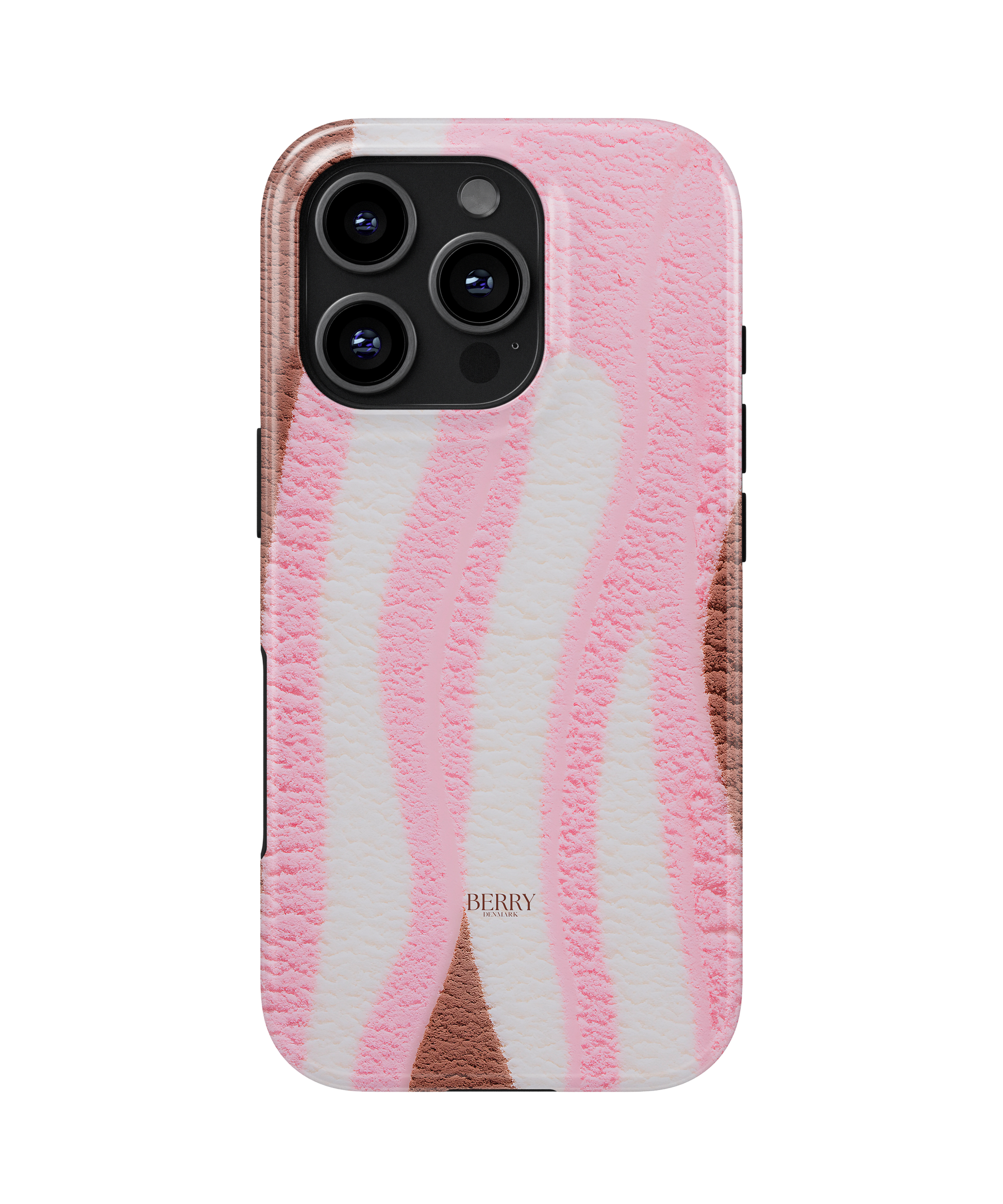 Det er vibes som en italiensk sommerdag hvor man går gennem Milano i solskin med en smeltende jordbær vanilje chokolade gelato i hånden. De bløde pink hvide og brune bølger føles som retro isbutik møder moderne it girl. Den giver sød tand attitude med en touch af fashion editorial. En æstetik der både er legesyg chic og meget Berry.