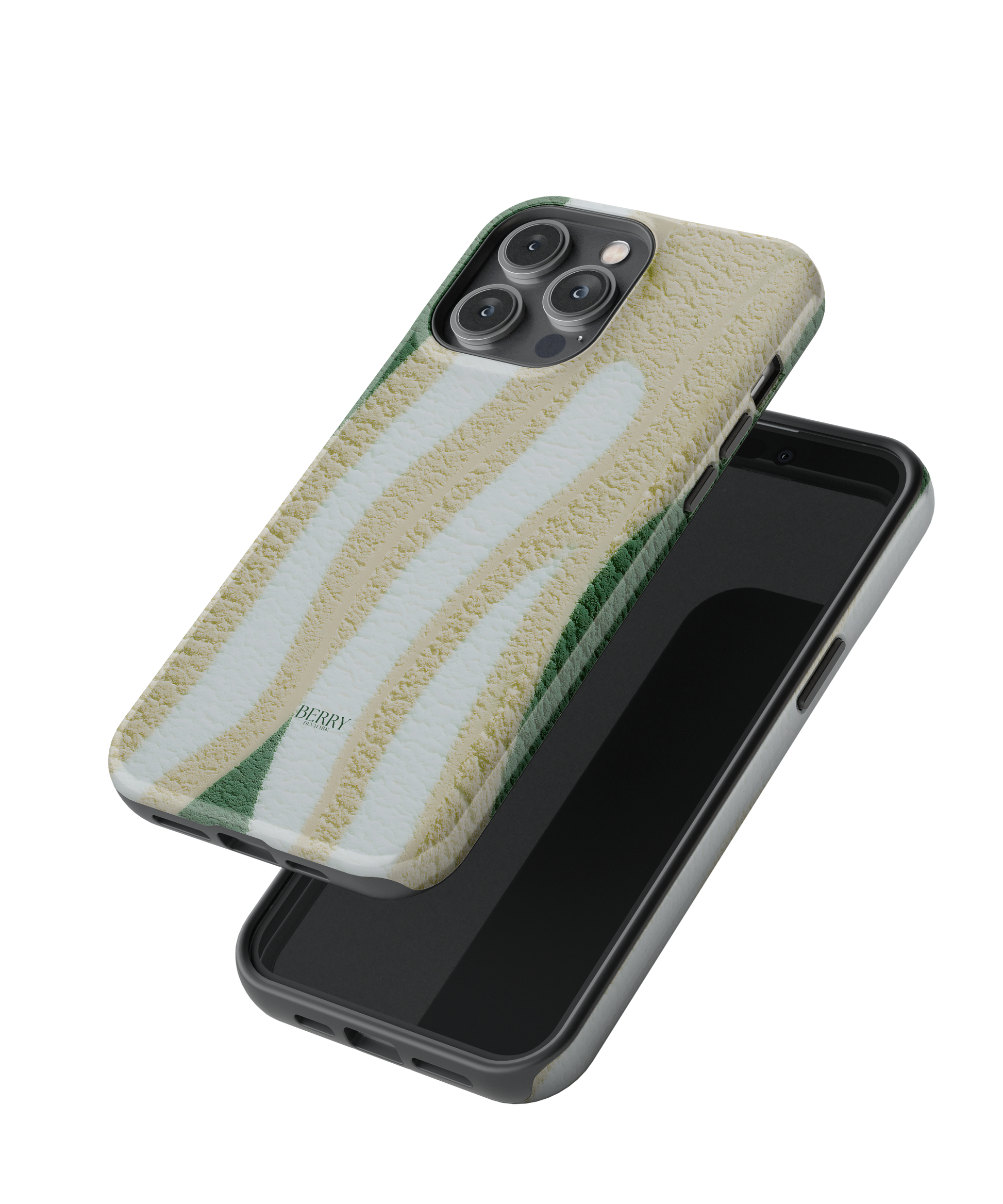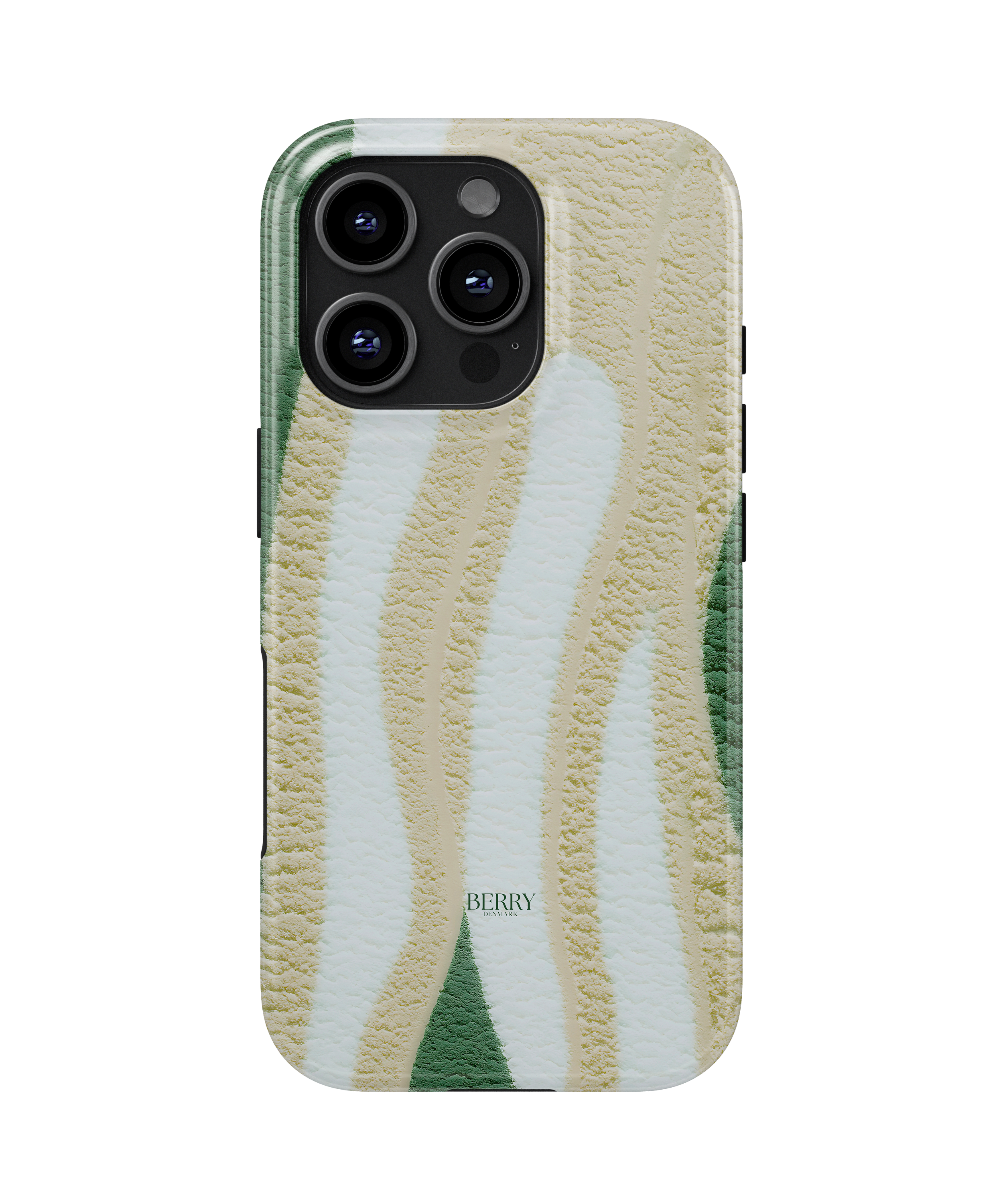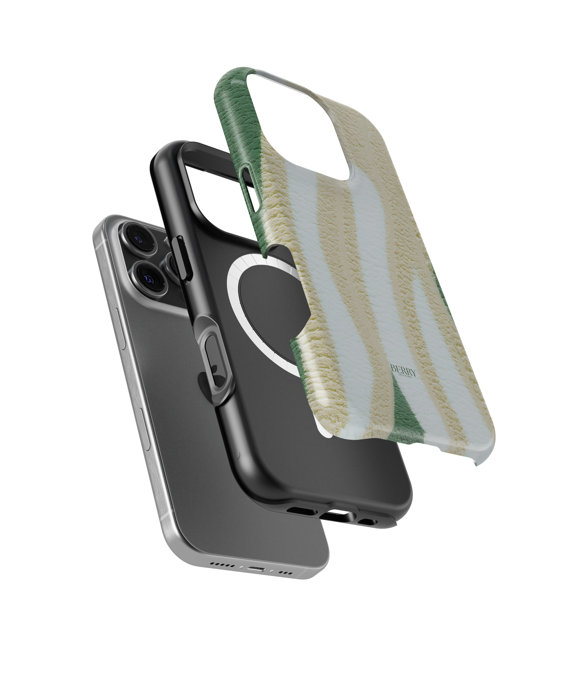 Det er som at sidde på en café i New York efter pilates med en kold iced matcha latte mens solen rammer bordet. De bølgende grønne beige og hvide striber føles som slow luxury wellness møder modeuge i Paris. Den giver mindful it girl energi med et strejf af eksklusiv rolig coolness.